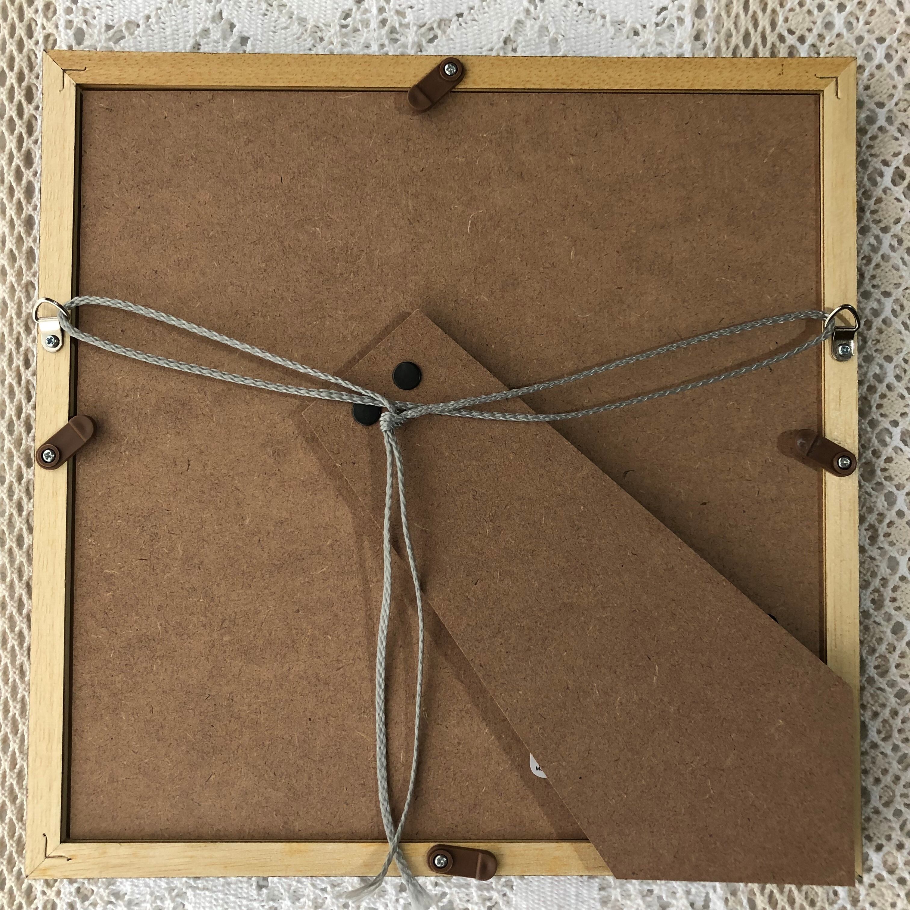 スタンド付、ひも付なので壁掛けも置いて飾ることも可能です。